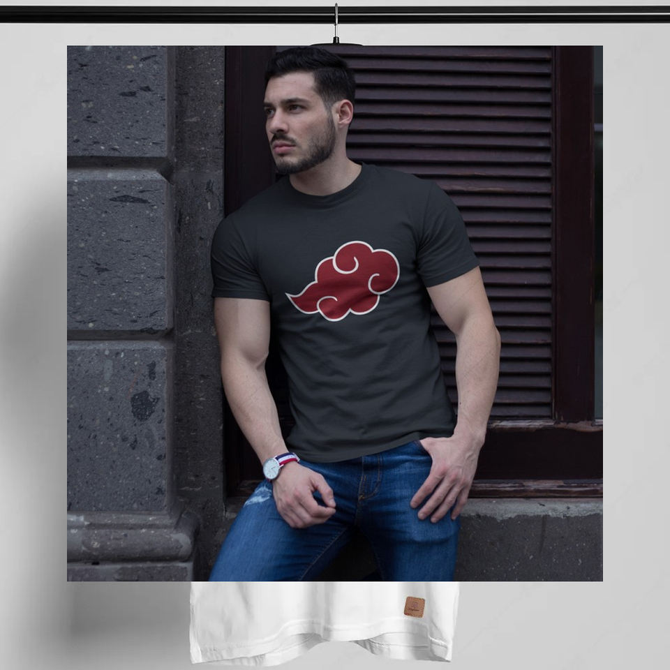 เสื้อยืดพิมพ์ลายกราฟิกเมฆสีแดงแบบกำหนดเองได้สำหรับทุกเพศสไตล์อะนิเมะสีดำเสื้อผ้าแนวสตรีทเสื้อยืดลำลองขนาดใหญ่อินเทรนด์เสื้อยืดกราฟิก