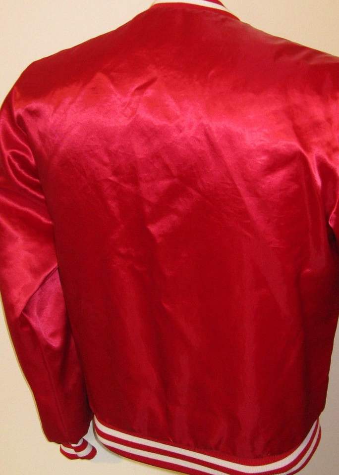 เสื้อแจ็คเก็ตวาร์ซิตี้ผ้าซาตินสีแดงแบบกำหนดเอง, เสื้อแจ็คเก็ตเบสบอลผ้าซาติน, เสื้อแจ็คเก็ตวาร์ซิตี้ผ้าฝ้าย