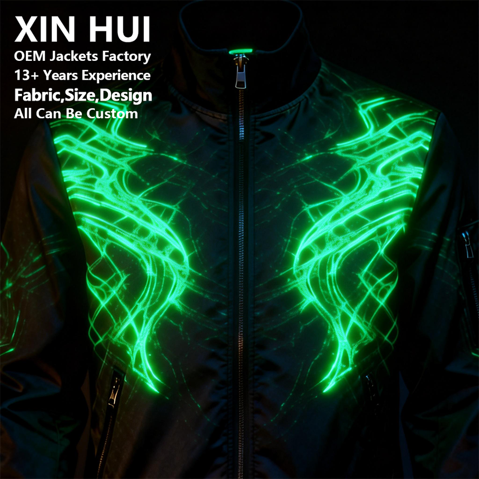 เสื้อแจ็คเก็ตคอร์ดูรอยสะท้อนแสงเรืองแสงในที่มืด กันลม สำหรับฤดูใบไม้ร่วง บุขนแกะ ผู้ชาย สไตล์เทคแวร์ สตรีทแวร์ Y2K ไซเบอร์พังก์ ซิปเต็มตัว