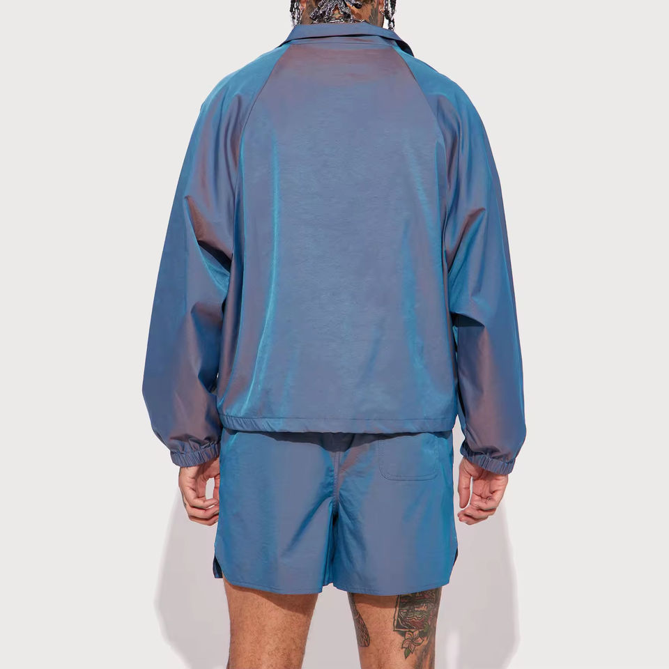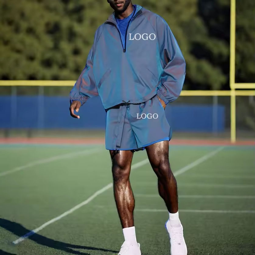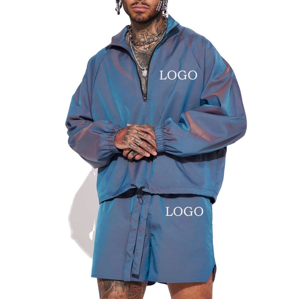 เสื้อแจ็คเก็ตกันลมแบบสะท้อนแสงพร้อมซิปถอดได้และกางเกงแทร็คไนลอนสำหรับผู้ชาย เสื้อแจ็คเก็ตระบายอากาศแบบสองชิ้น