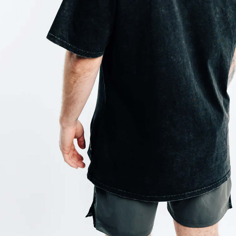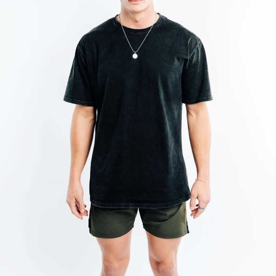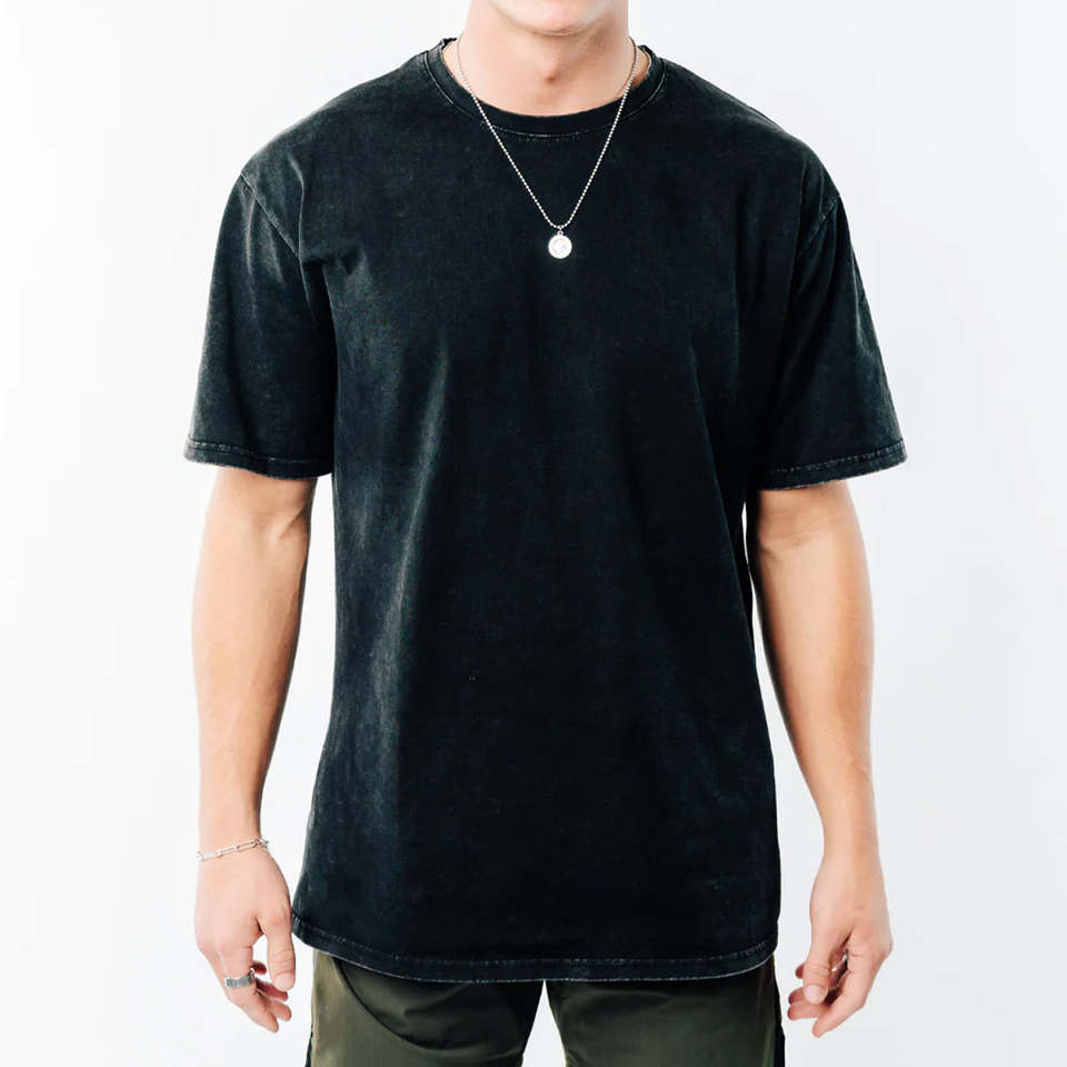 เสื้อยืดคอตตอนถักทรงเรกูลาร์ฟิต ล้างสีแบบแอซิดวอช 100% ผ้าคุณภาพพรีเมียม ระบายอากาศได้ดี แห้งเร็ว ทรงไหล่ตก