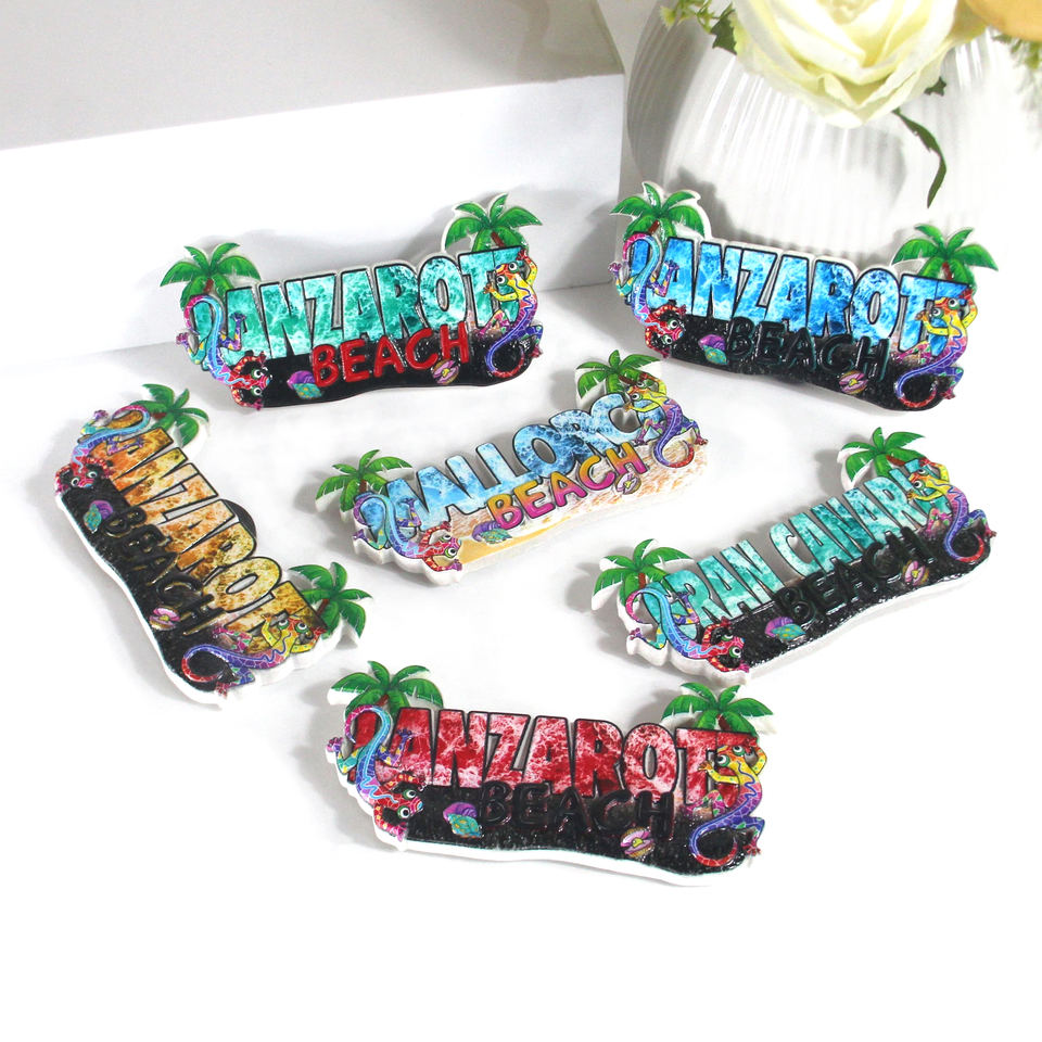 ตู้เย็นแม่เหล็กเรซินสั่งทำของที่ระลึกด้วย UV พิมพ์3D ชื่อเมือง grancanaria ดีไซน์ชายหาดเป็นมิตรต่อสิ่งแวดล้อม