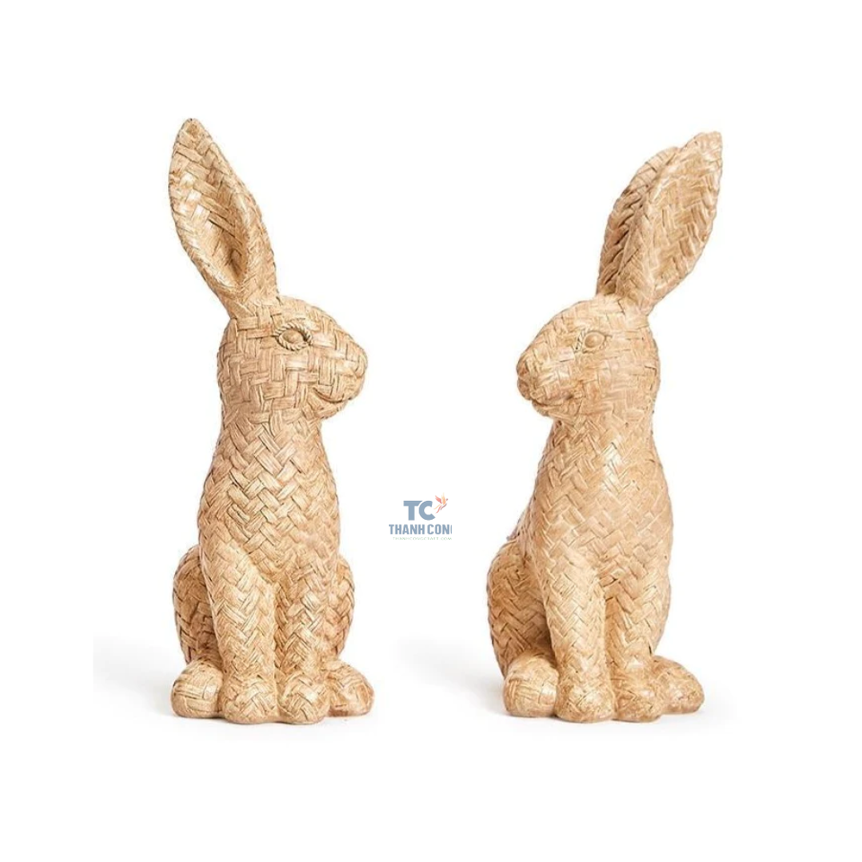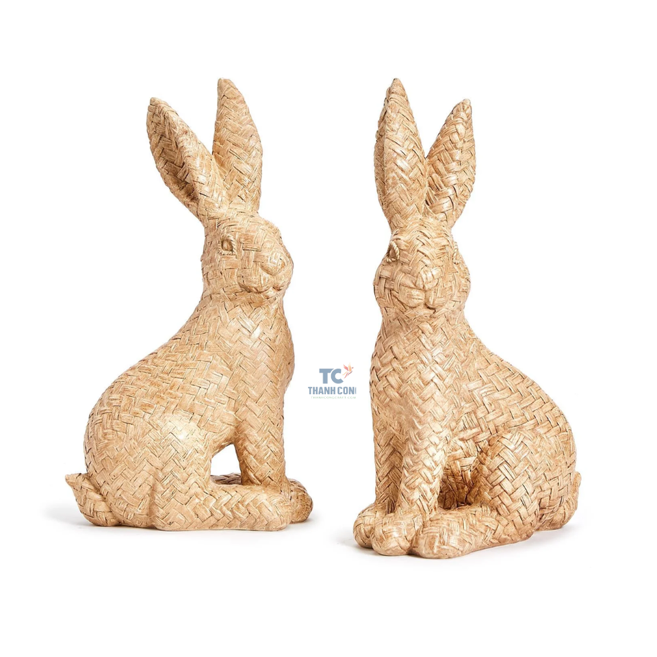 ที่กําหนดเองเรซิ่นหวายกระต่ายรูปปั้นนั่งกระต่ายอีสเตอร์กระต่ายตุ๊กตาเรซิ่นหวายกระต่ายเครื่องประดับตกแต่งคริสต์มาส