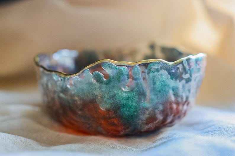 ถาดเสิร์ฟเรซิ่นแบบกำหนดเอง จานใส่กุญแจตกแต่งขอบสีทองเงิน งานฝีมือทำมือเพ้นท์มือ งานฝีมือเหนือกาลเวลา