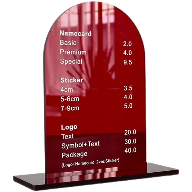 ป้ายอะคริลิคป้ายสัญลักษณ์ทางธุรกิจเมนูอาหารแบบกำหนดเองได้