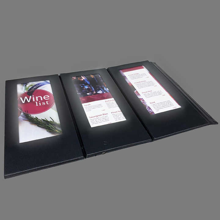 ไฟ LED แบบชาร์จไฟได้สำหรับร้านอาหารปรับได้3มุมมองแบบสามพับได้ขาตั้งตั้งโต๊ะเมนูแบบปรับได้ตามต้องการ