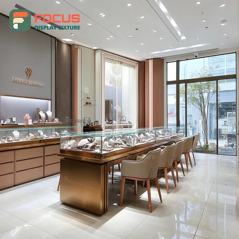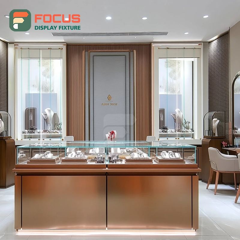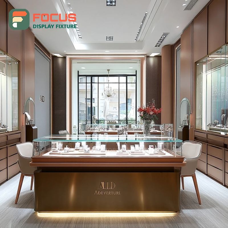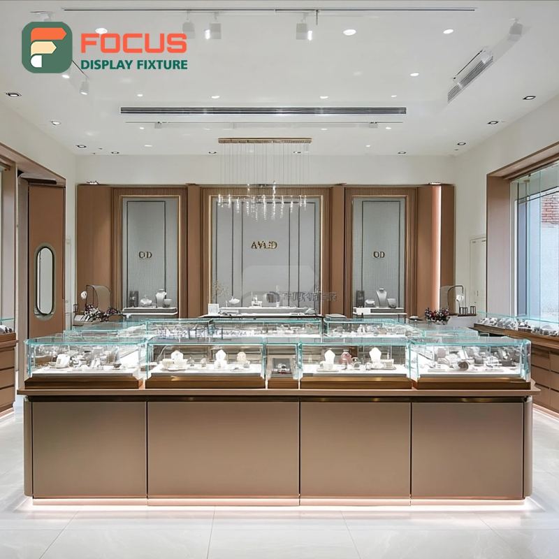 ตู้โชว์เครื่องประดับแบบกำหนดเองสำหรับร้านค้าปลีก โครงโลหะ ตู้โชว์กระจกสำหรับร้านค้าเชิงพาณิชย์