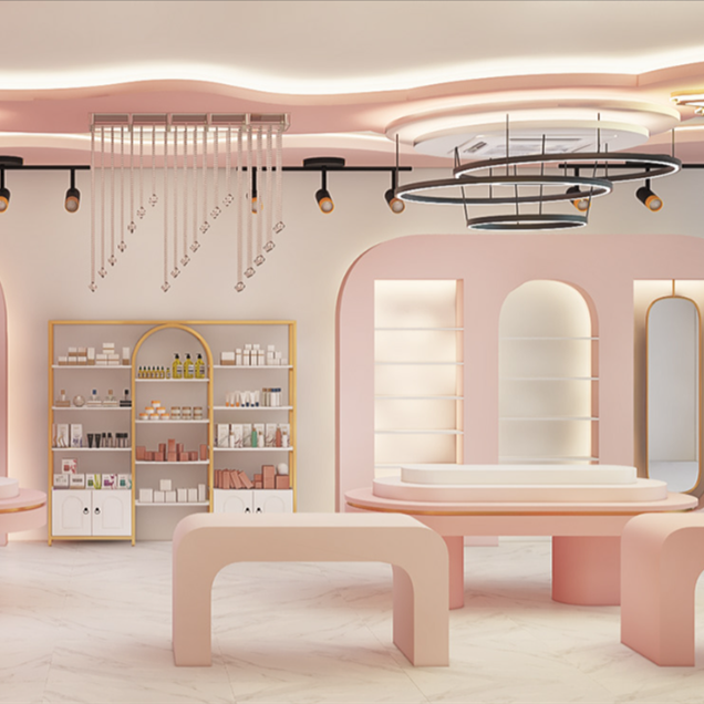 ชั้นวางแสดงเครื่องสำอางตามสั่งหัวเรื่อง