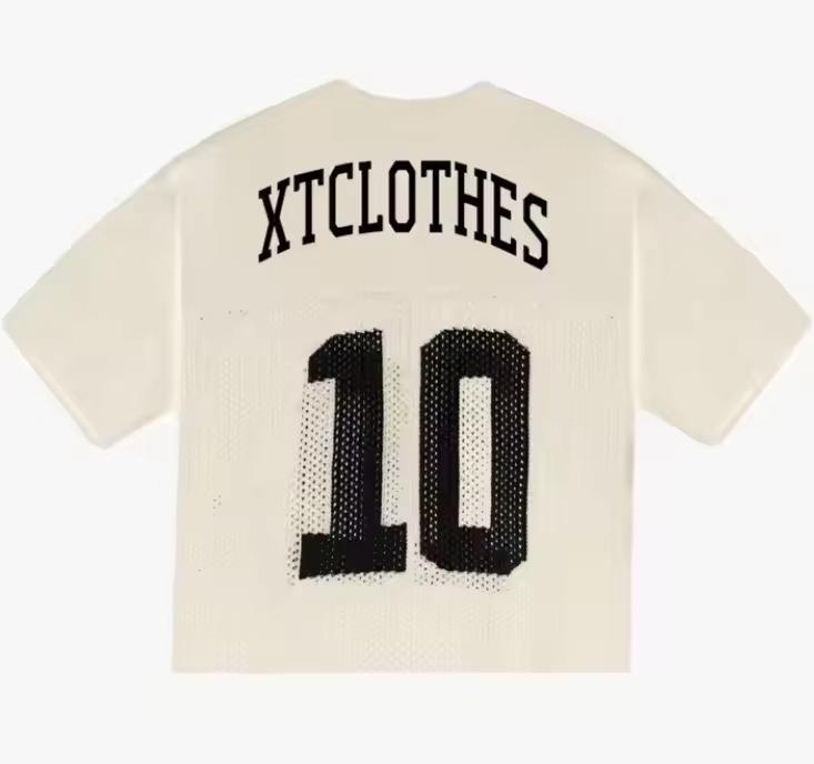 เสื้อเจอร์ซีย์สไตล์อเมริกันฟุตบอลย้อนยุคแบบสตรีทแวร์ แฟชั่นเสื้อครอปตาข่ายพร้อมหมายเลขและชื่อทีม พิมพ์ลายแบบซับลิเมชั่น สำหรับใส่เล่นฟุตบอล