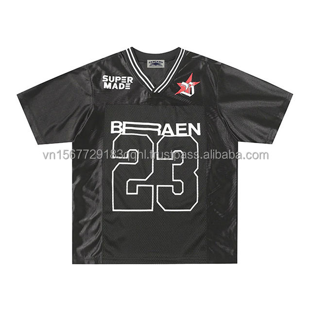 เสื้อกีฬาย้อนยุคแบบกำหนดเอง แขนสั้น ทรงหลวม แฟชั่นทันสมัยสำหรับทุกเพศ รุ่นแฟนคลับแบรนด์ดัง