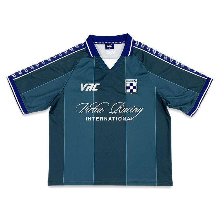 เสื้อฟุตบอลสตรีทสไตล์ย้อนยุคเสื้อฟุตบอลคอวีพิมพ์ลายชุดโลโก้