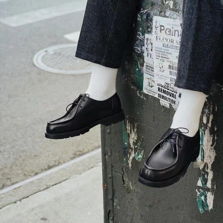 รองเท้าโลฟเฟอร์เดอร์บี้หนังกลับแท้สไตล์เรโทรแบบสั่งทำพิเศษทรงหุ้มข้อสูงสำหรับผู้ชายใส่เดินเล่นลำลองในฤดูใบไม้ผลิ