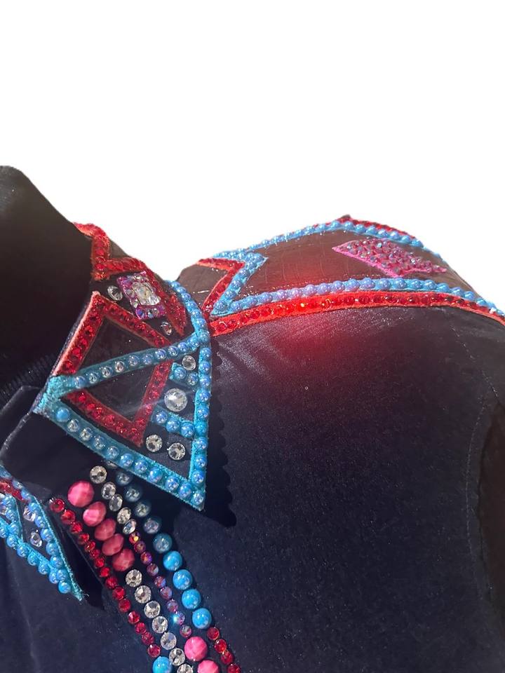 เสื้อย้อนยุคย้อนยุคสีดำสำหรับผู้หญิงเสื้อขี่ม้าโรดิโอควีนออกแบบได้ตามต้องการ