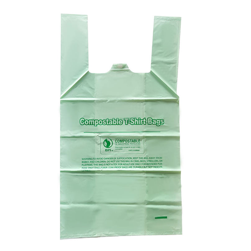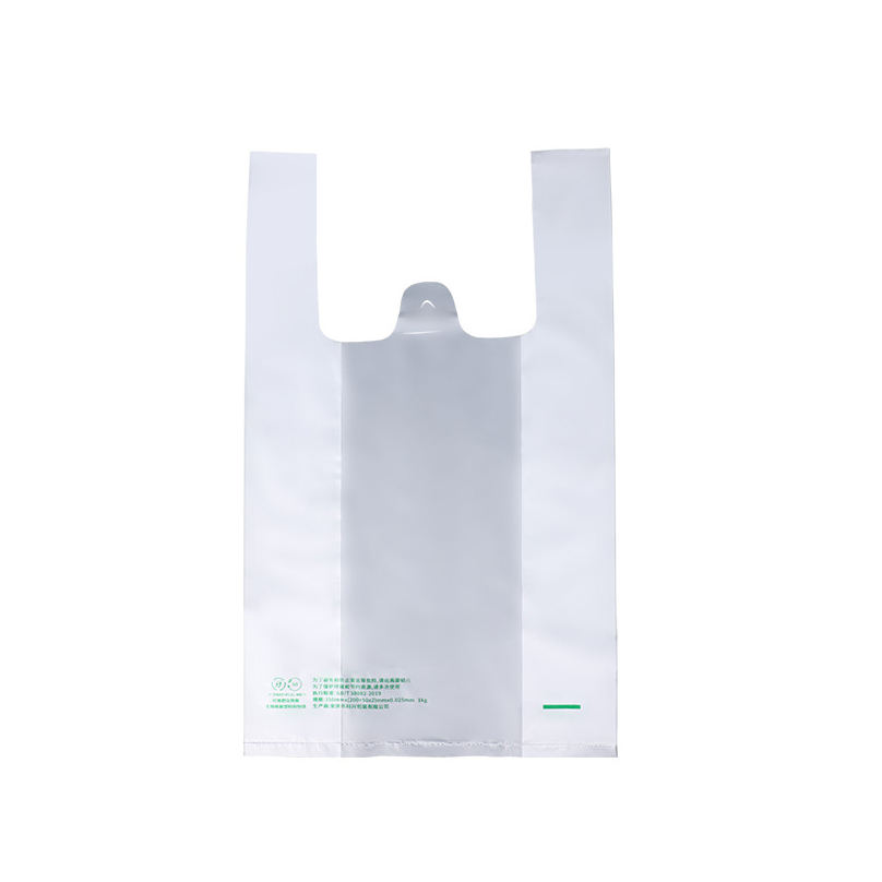 ถุงใส่เสื้อยืดแบบย่อยสลายได้ถุงช้อปปิ้งพลาสติกเป็นมิตรต่อสิ่งแวดล้อมสำหรับซูเปอร์มาร์เก็ตและร้านค้าปลีกออกแบบได้ตามต้องการ