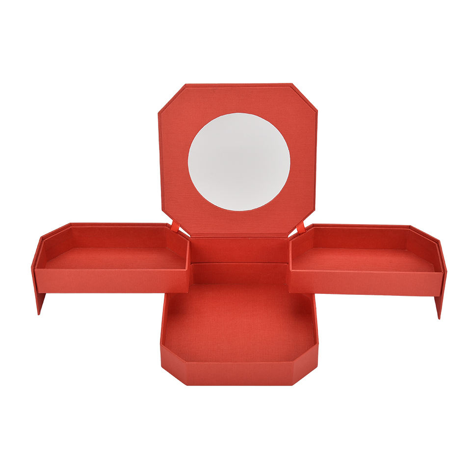 กล่องเครื่องประดับกระจกแต่งหน้าทรงแปดเหลี่ยมสีแดง