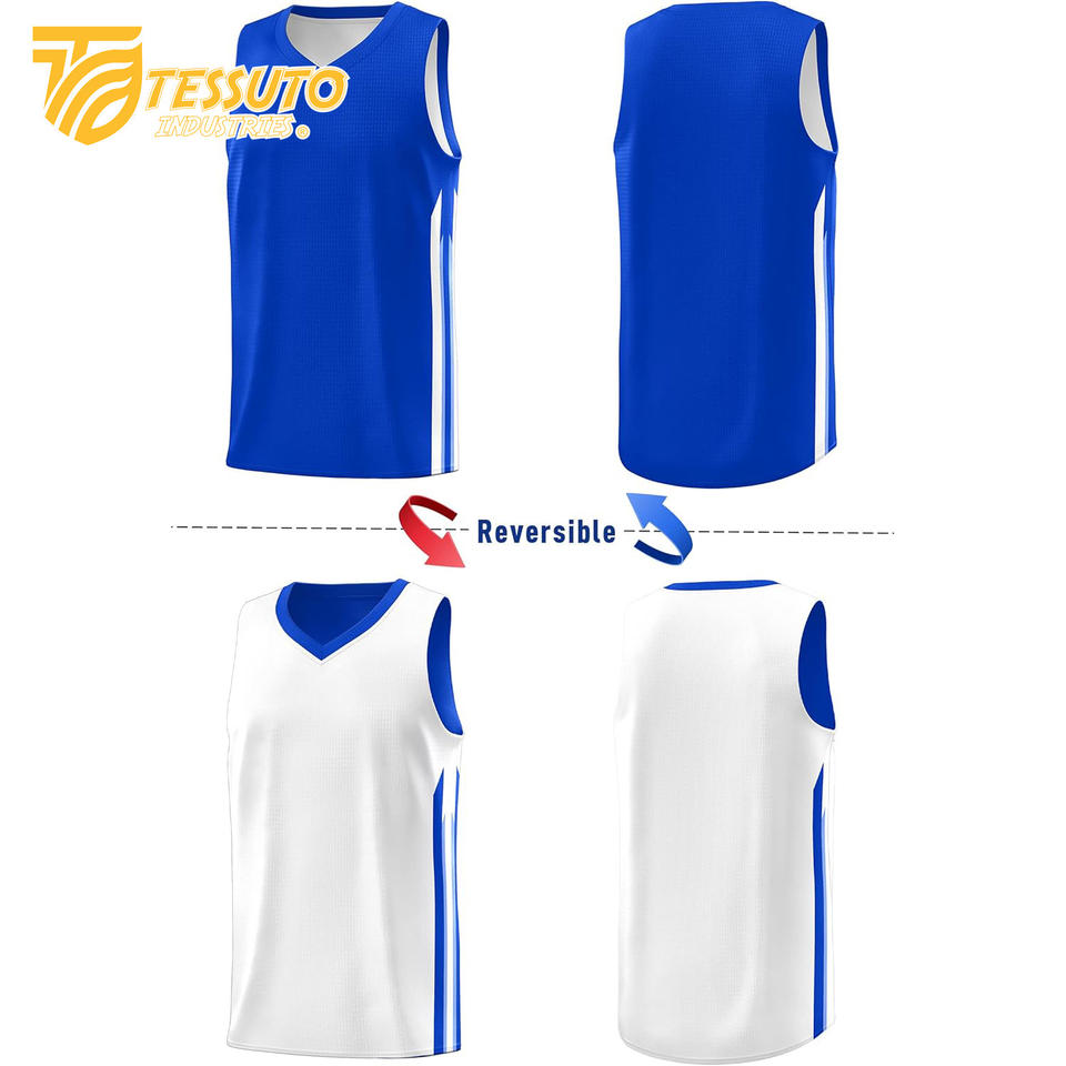 เสื้อบาสเก็ตบอลผ้าโพลีเอสเตอร์เย็บตะเข็บตาข่ายเสื้อกล้ามใส่เล่นบาสเก็ตบอลมีตัวเลขแบบระเหิดออกแบบได้ตามต้องการ