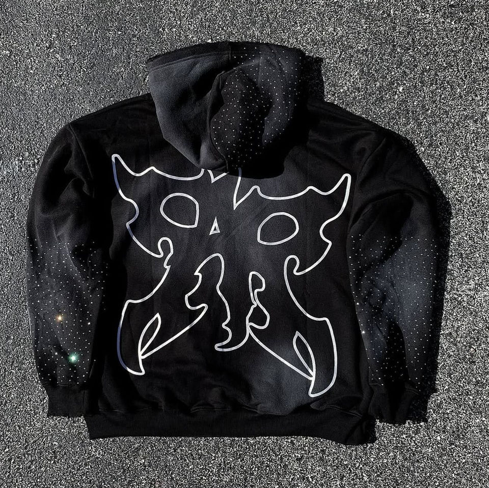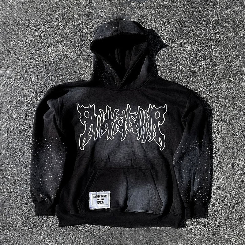 เสื้อมีฮู้ดซักกรดพลอยเทียมมีฮู้ดพิมพ์ลายโลโก้ผ้าฟลีซเทอร์รี่สไตล์วินเทจ