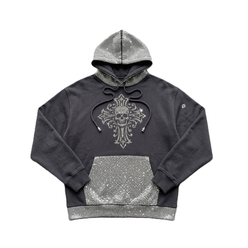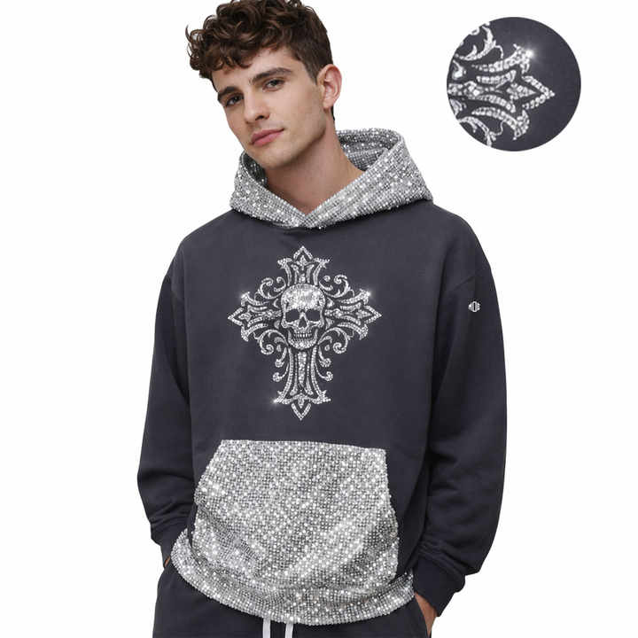 เสื้อฮู้ดดี้ปักลายเพชรแบบกำหนดเองสำหรับผู้ชาย ผ้าฝ้ายเนื้อหนานุ่ม สไตล์สตรีทแวร์ ทรงโอเวอร์ไซส์ ใส่ได้ทั้งชายและหญิง ดีไซน์กราฟิก ผลิตจำนวนน้อยได้