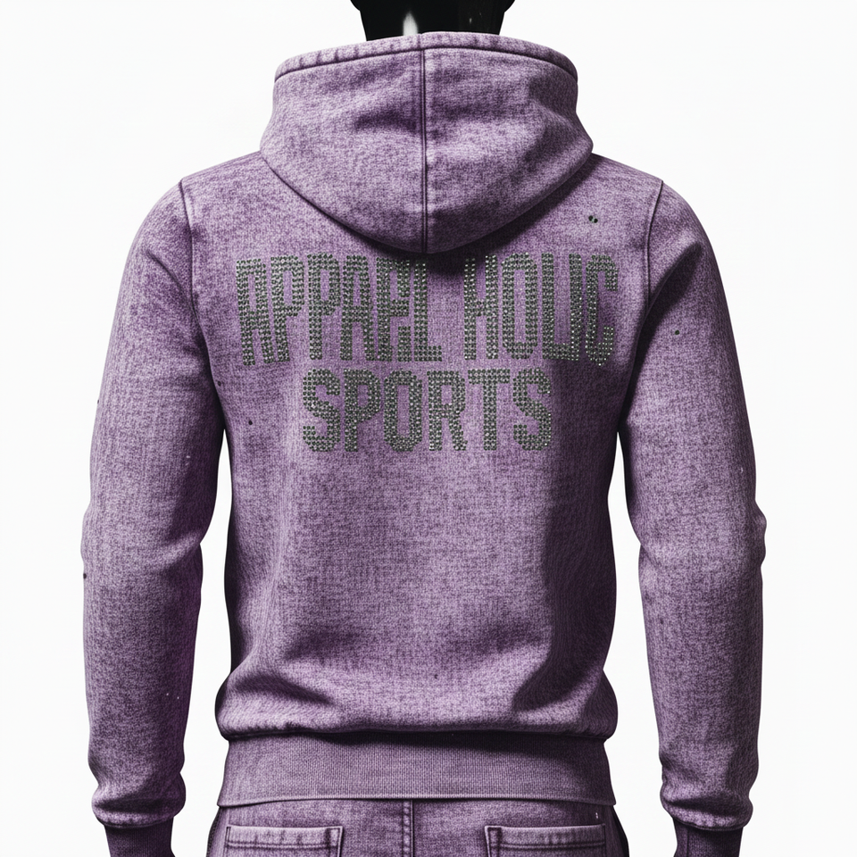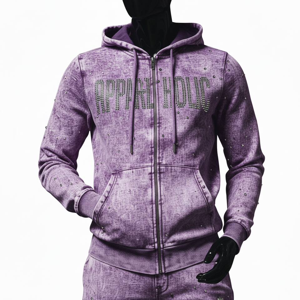 ชุดวอร์มผู้ชายแบบ 2 ชิ้น พิมพ์ลายกราฟิกประดับเพชรเทียม ปรับแต่งสีได้ กางเกงวอร์มขาบาน เสื้อฮู้ดซิป และชุดจ็อกเกอร์สำหรับผู้ชาย