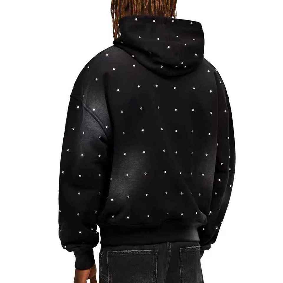 เสื้อฮู้ดพลอยเทียมออกแบบเองด้วยการออกแบบด้านหน้าที่ไม่ซ้ำใครซึ่งสร้างขึ้นสำหรับงานปาร์ตี้เครื่องแต่งกายแนวสตรีทและลุคประจำวันที่ทันสมัย