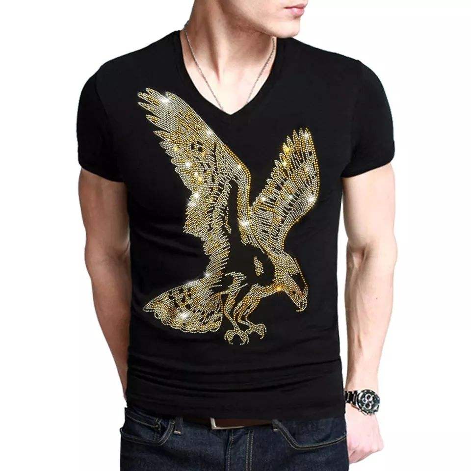 เสื้อยืดผู้ชายปักลายเพชรแบบกำหนดเอง น้ำหนัก 170 กรัม คอกลม แขนสั้น พิมพ์ลายโลโก้ด้านหน้า สไตล์ฮิปฮอป ผ้าโพลีเอสเตอร์ 100% กันยับ