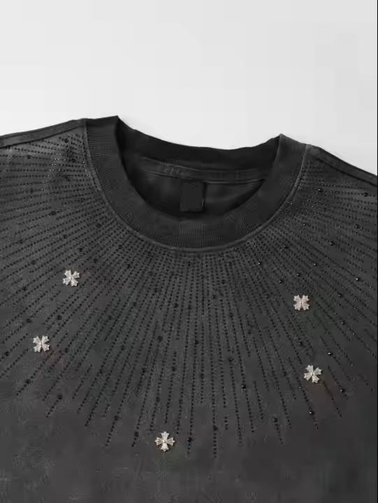เสื้อยืดลายพระอาทิตย์ประดับพลอยเทียมเสื้อยืดสีดำโอเวอร์ไซส์ลายดาวฮิปฮอปแนวสตรีทเสื้อยืดผู้ชายผ้าคอตตอน100%