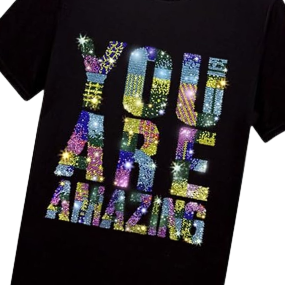 เสื้อยืดพิมพ์ลายคริสตัลระยิบระยับสำหรับทั้งชายและหญิงดีไซน์แบบมีสไตล์สตรีทแวร์