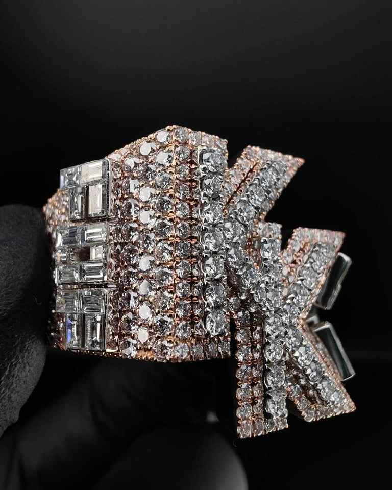 แหวนแชมป์ชุบทองโรเดียมแบบกำหนดเอง ประดับเพชรโมอิสซาไนต์ สไตล์ฮิปฮอป พร้อมสลักชื่อย่อ สำหรับผู้ชาย เหมาะสำหรับงานแต่งงาน