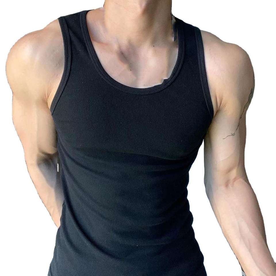 เสื้อกล้ามริบบ์คุณภาพสูง ทรงเข้ารูป ผ้าฝ้ายริบบ์ สำหรับผู้ชาย ออกกำลังกาย ฟิตเนส สตรีทแวร์ เสื้อยืดแขนกุด