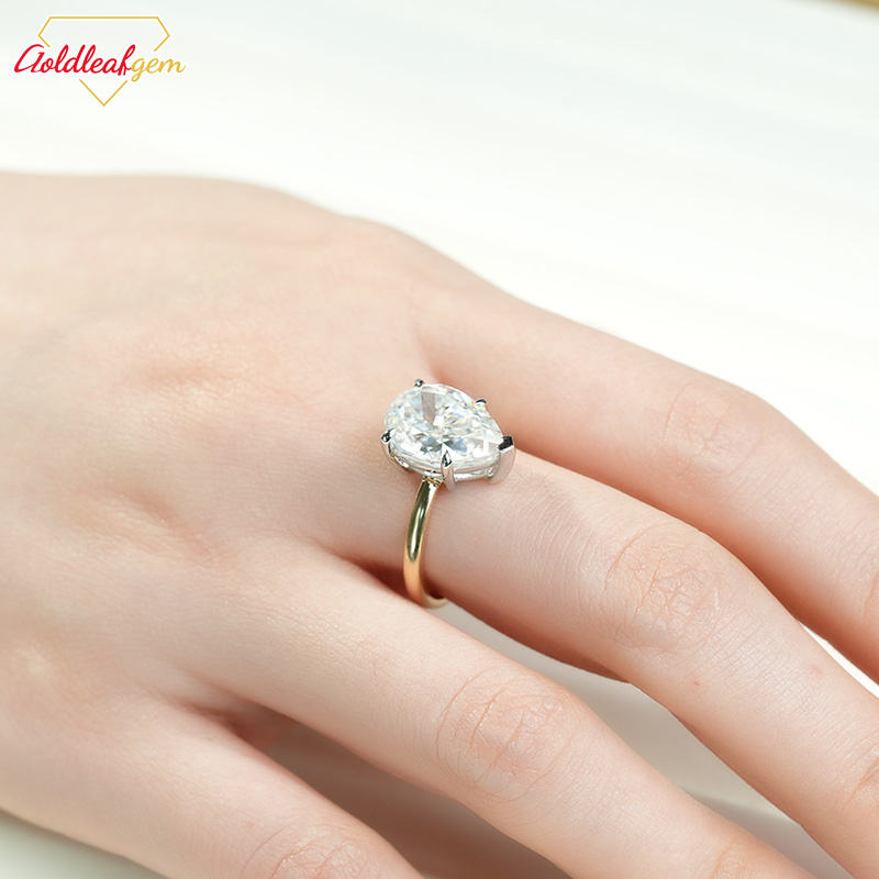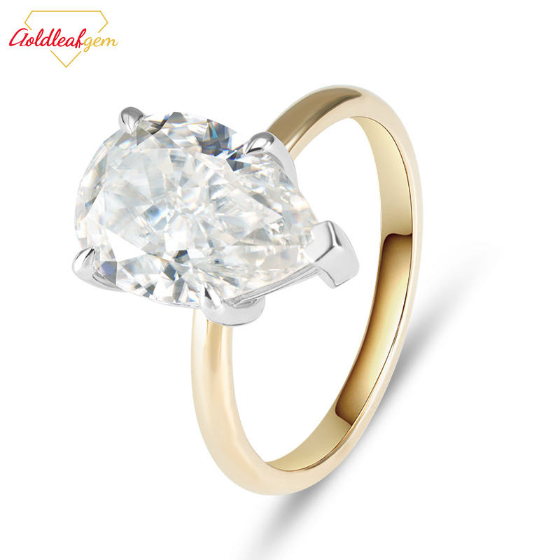 แหวนสั่งทำ 10k 14k 18k ทองคำขาว ทองคำเหลือง ชุบโรเดียม ทรงลูกแพร์ 1ct-4ct โมอิสซาไนต์ แหวนหมั้นสำหรับงานแต่งงานและงานเลี้ยง