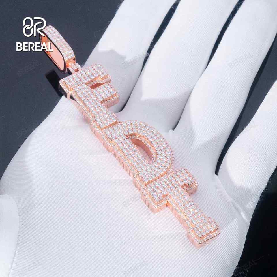 จี้ VVS Moissanite ตัวอักษรสีโรสโกลด์ที่กำหนดเองเครื่องประดับผู้ชายผู้หญิงสไตล์ฮิปฮอปเพชรเย็นออกจี้ชื่อเพชร