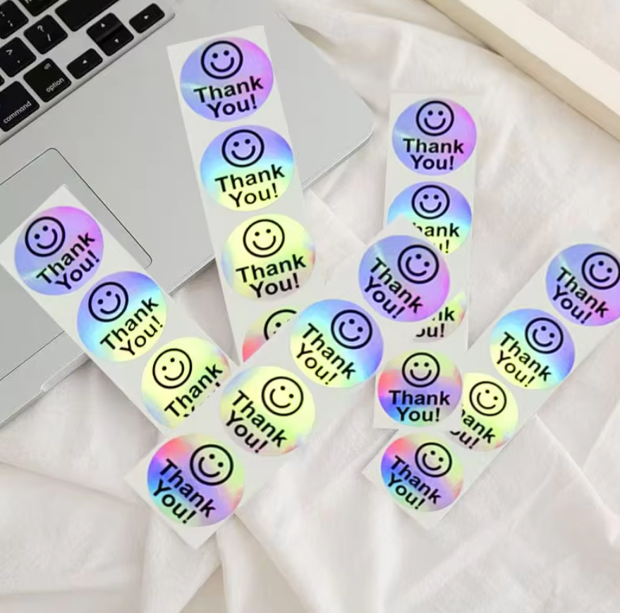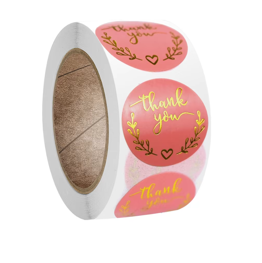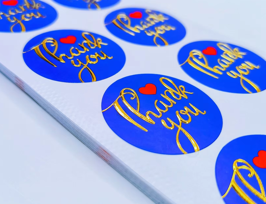 Product name:custom round circle blue color gold foil embossed thank you sticker