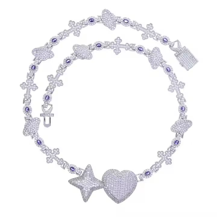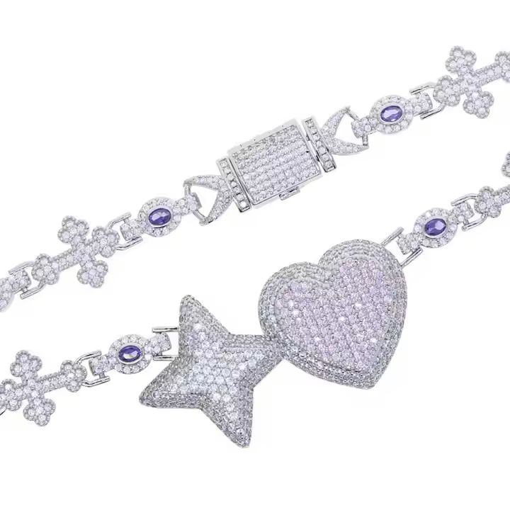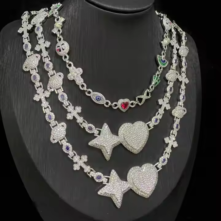 สร้อยคอคิวบาลิงค์ทรงกลมแบบกำหนดเองประดับเพชรโมอิสซาไนต์ VVS สไตล์ฮิปฮอป ทองคำขาว เงินแท้ 925 สร้อยคิวบาลิงค์สำหรับผู้ชาย เครื่องประดับคุณภาพสูง