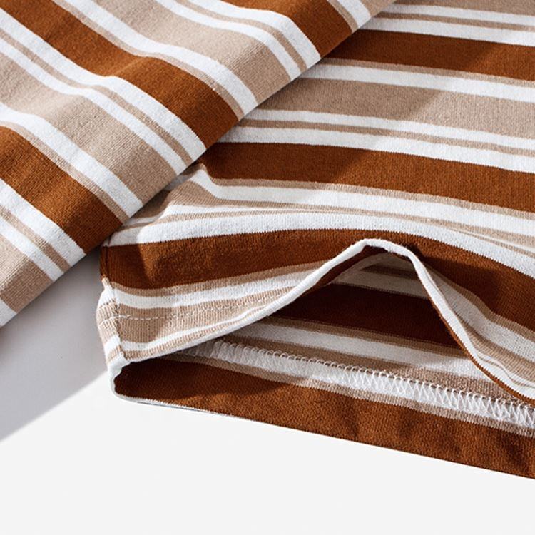 เสื้อยืดลายทางคอกลมเสื้อไม้ไผ่เสื้อยืดสำหรับทุกเพศ