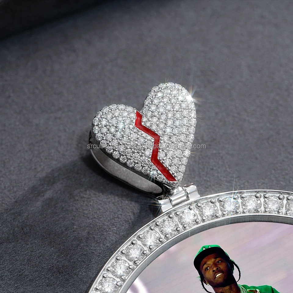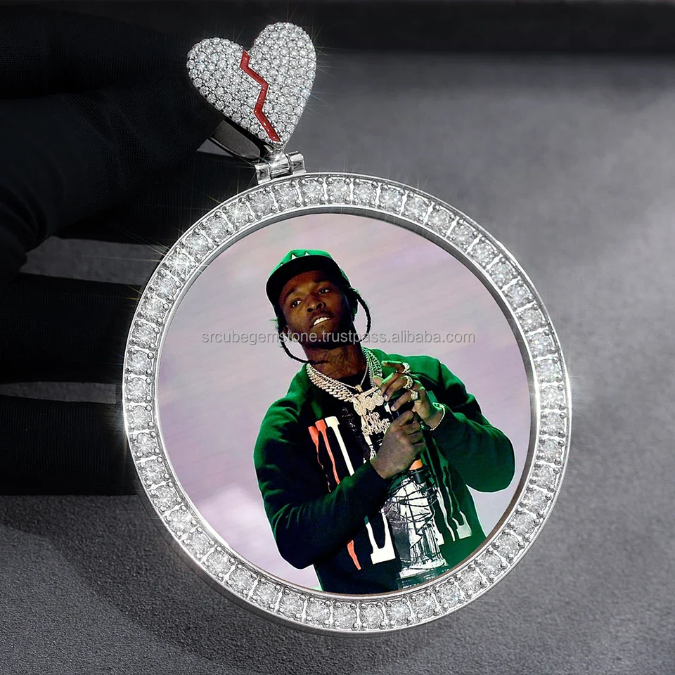 จี้รูปภาพทรงกลมแบบกำหนดเองประดับโมอิสซาไนต์พร้อมตัวล็อคแบบหัวใจหัก เพชร VVS ชุบทองคำขาวและทองคำ สำหรับงานปาร์ตี้ฮิปฮอป