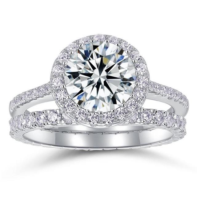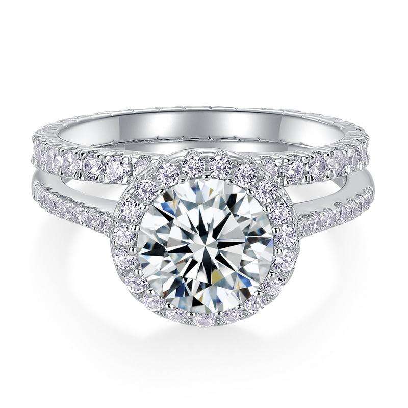 แหวนแต่งงานหรูหราสำหรับผู้หญิง ดีไซน์ทรงกลมแบบ Halo ประดับเพชรโมอิสซาไนต์ VVS1 IGI ขนาด 1.5 กะรัต 2 กะรัต 8 มม. ทำจากเงินสเตอร์ลิง