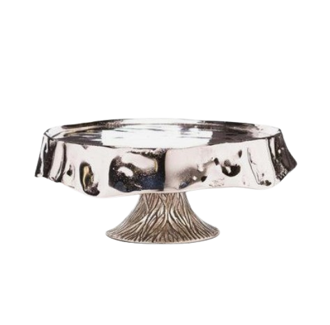 ที่วางเค้กสำเร็จรูปสีเงินสไตล์ราชวงศ์แบบกำหนดเองฐานวางแบบโค้งมนสำหรับคัพเค้กขนมอบเค้กเครื่องมือทำเค้ก