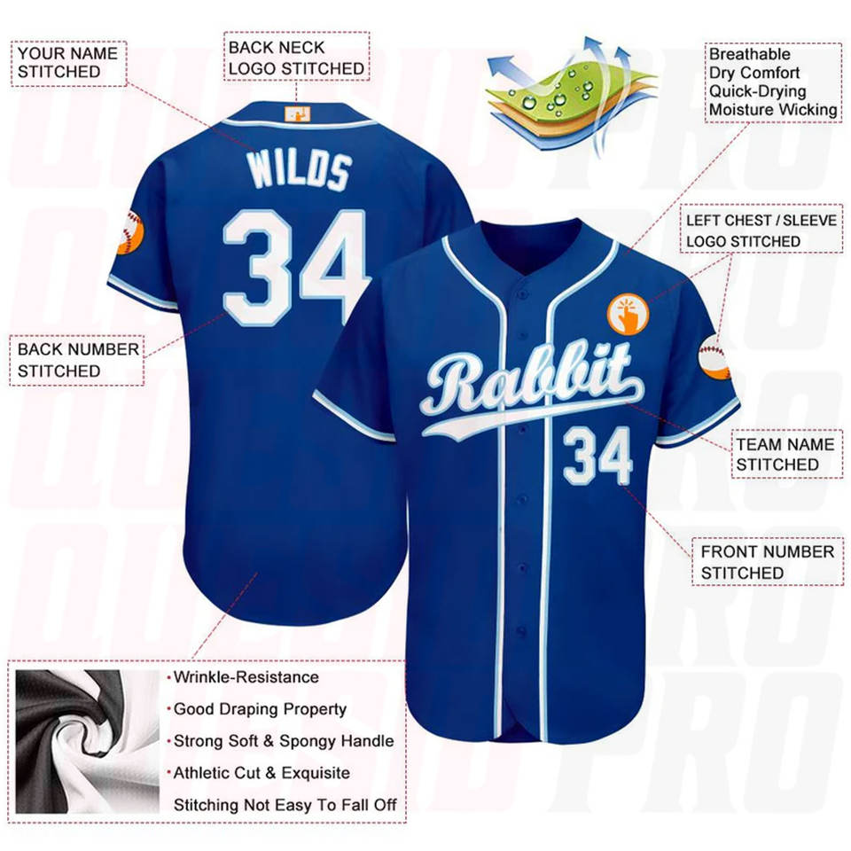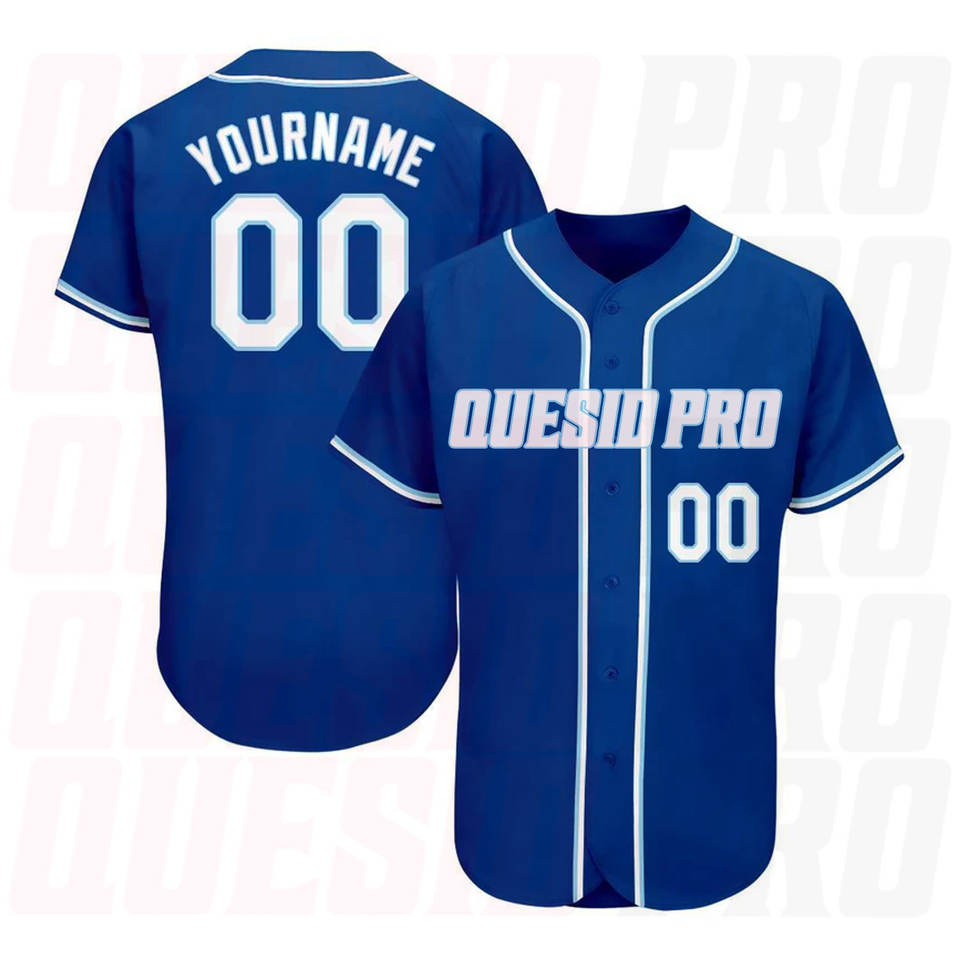 เสื้อเบสบอลสีขาวและฟ้าอ่อนแบบกำหนดเองได้ พร้อมบริการพิมพ์ลายแบบ Sublimate ออกแบบโลโก้สีทีมสโมสรตามสั่ง