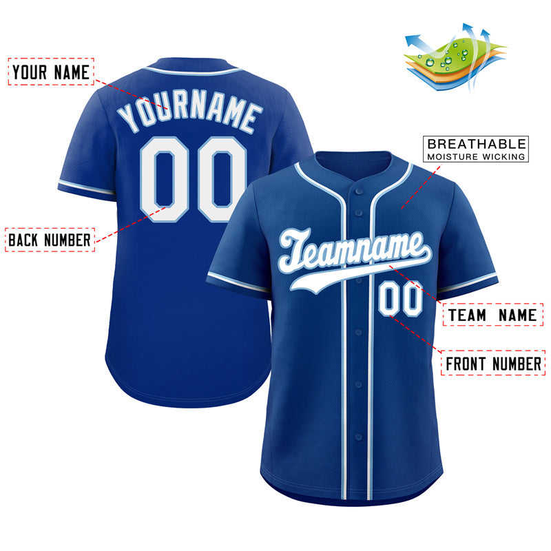 เสื้อเบสบอลคลาสสิคแบบมีตะขอเกี่ยวสีขาว-ฟ้าอ่อนแบบกำหนดเองของรอยัล