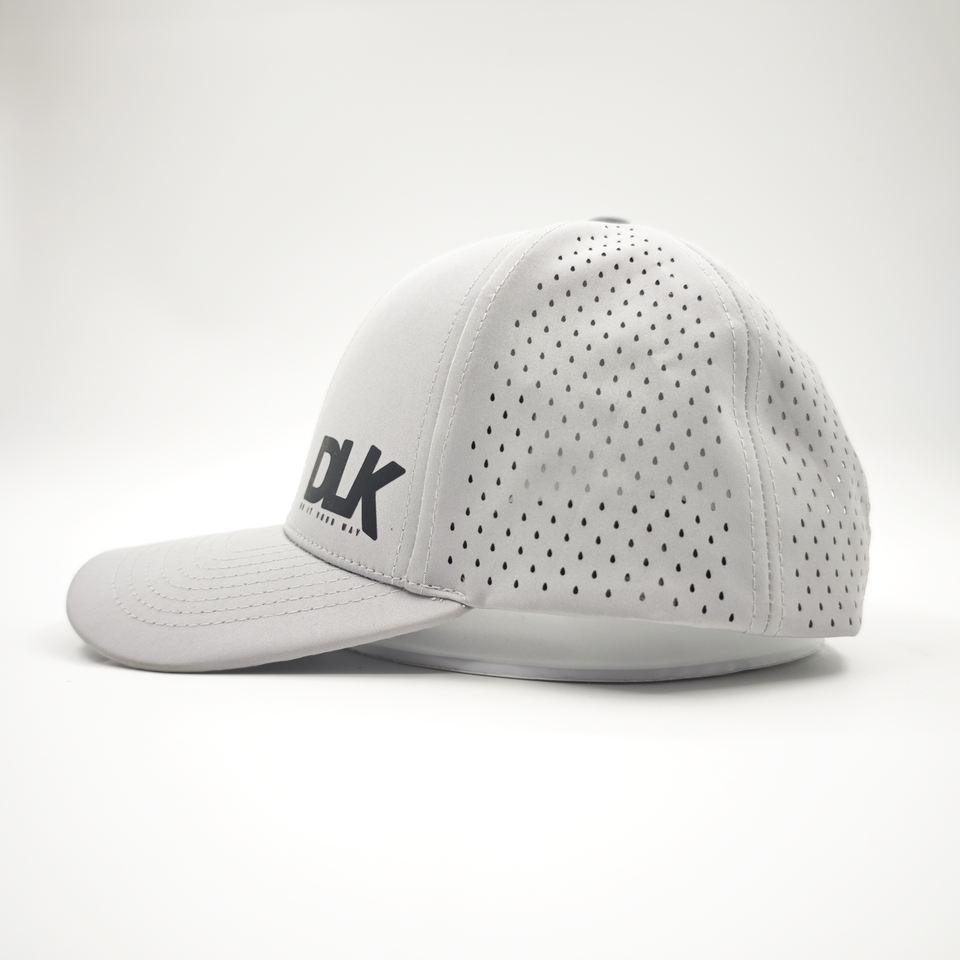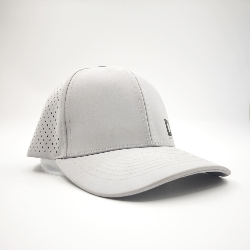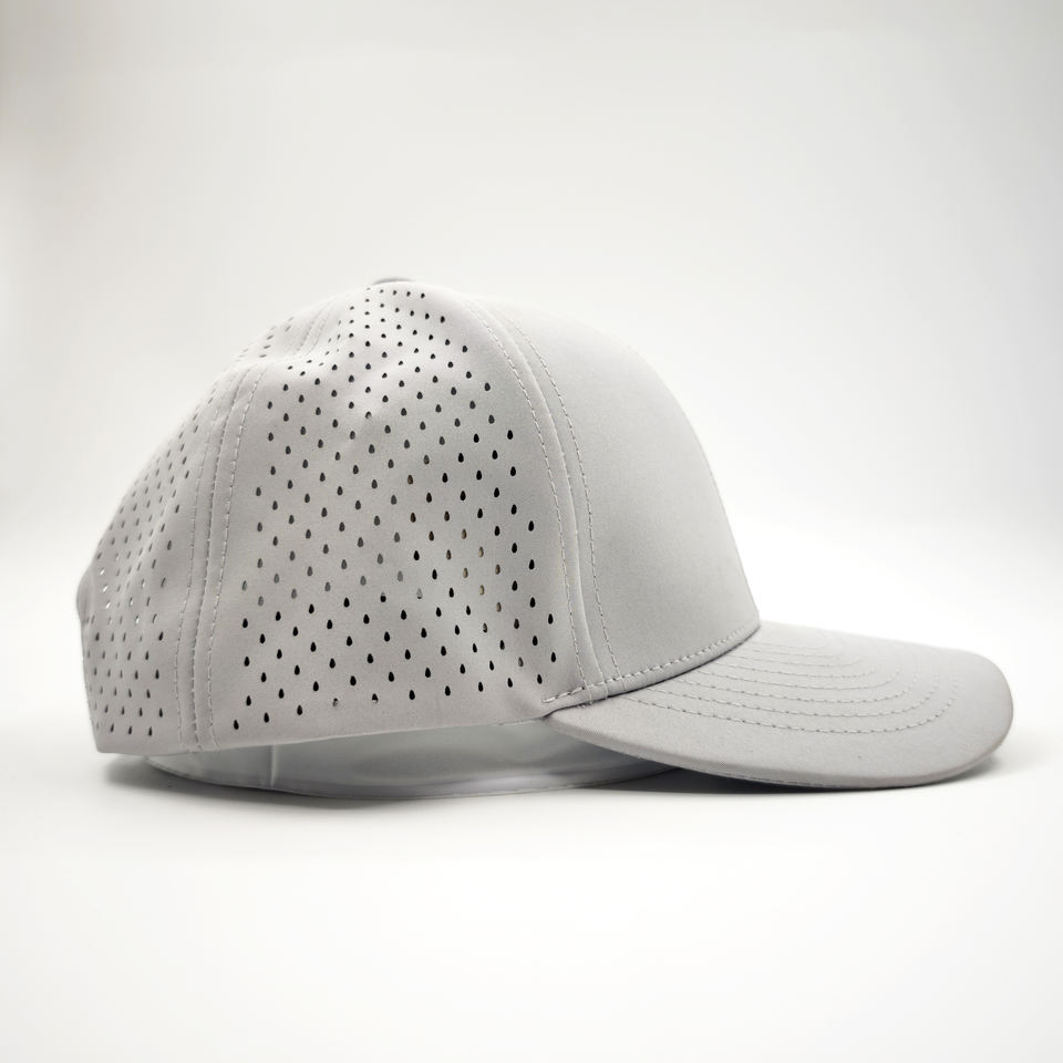 Custom Rubber Logo Men Flat Brim 6 Panel Laser Cut Hole Perforated Golf Hat Waterproof Baseball Cap Printed Performance Dad Hat