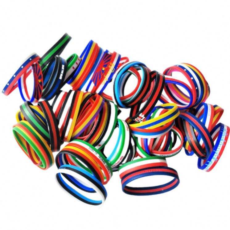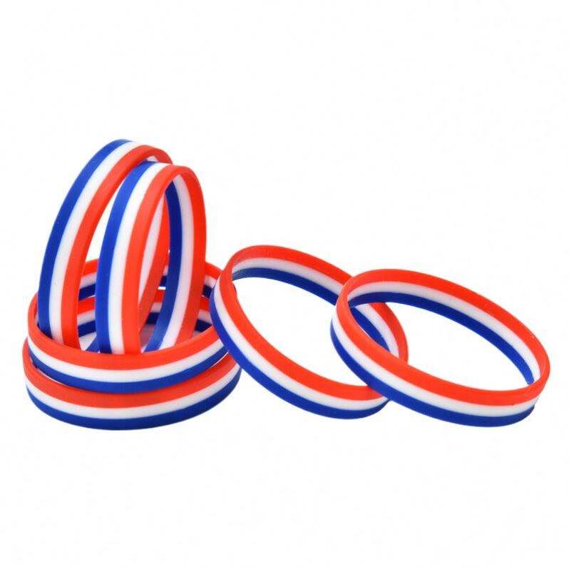 Custom Rubber Wristband with Three-layer Color National Flag Silicone Bracelet, Printable Logo, Layered Color Silicone Bracelet