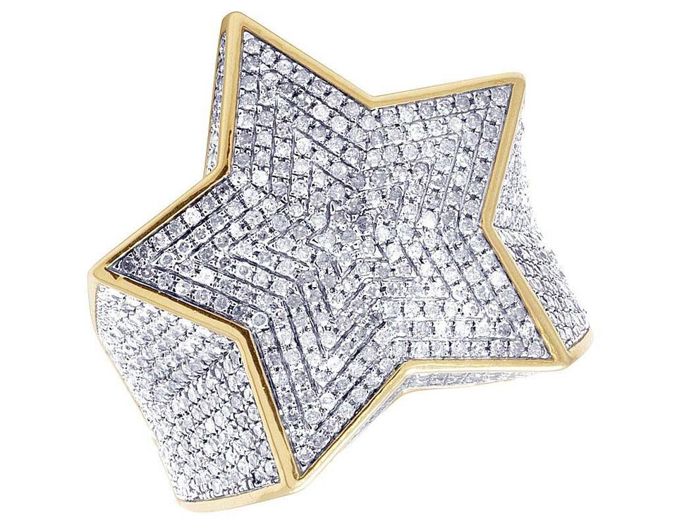 แหวนแร็ปเปอร์ผู้ชายทรงดาวสไตล์ฮิปฮอปชุบเพชรสีเงิน S925ตามสั่ง