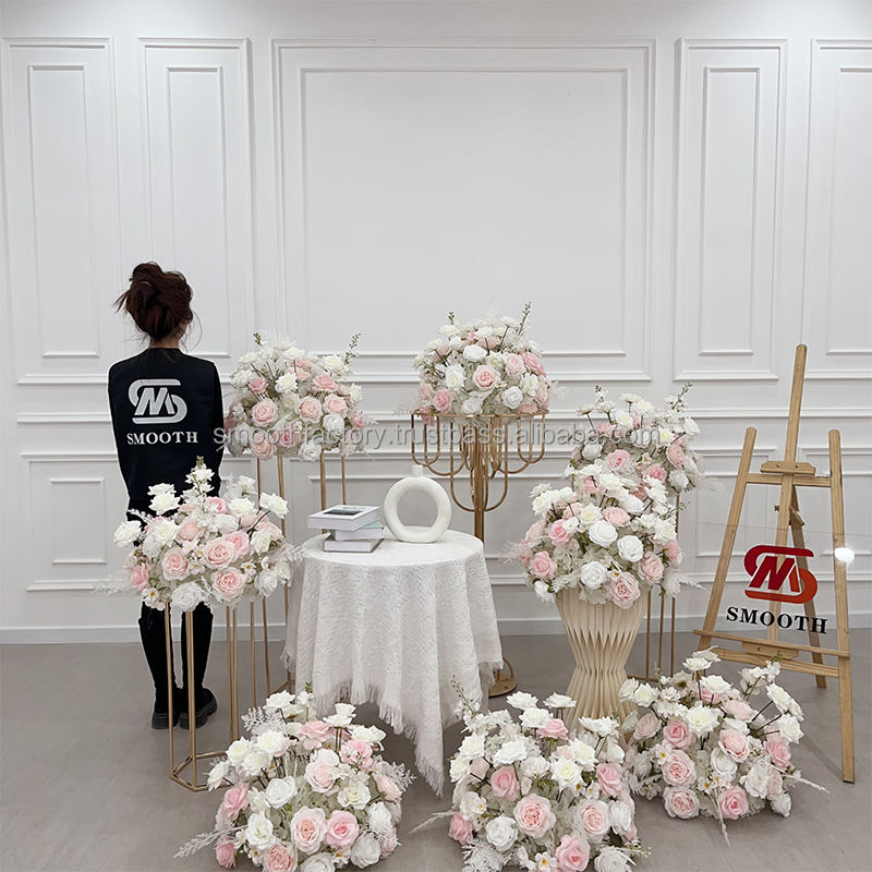 ลูกบอลดอกกุหลาบทำจากผ้าไหมสีชมพูเทียมเรียบงานประดิษฐ์ทำมือชิ้นกลางและตกแต่งสำหรับวันวาเลนไทน์