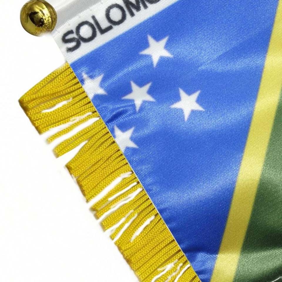 ธงซาตินแบบกำหนดเอง เกาะโซโลมอน ธงขนาดเล็กสำหรับรถยนต์ พร้อมพู่สีเหลือง