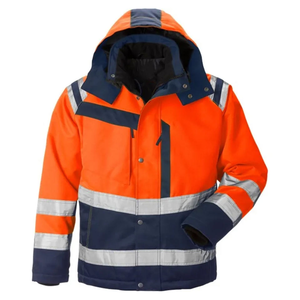 ผู้จัดจำหน่ายเสื้อแจ็คเก็ตนิรภัยแบบกำหนดเอง เสื้อผ้าทำงานสะท้อนแสงเรืองแสง LED แบบมีไฟกระพริบ โพลีเอสเตอร์กันความร้อน สำหรับงานกลางคืน ระดับ 2 ความปลอดภัยสูง