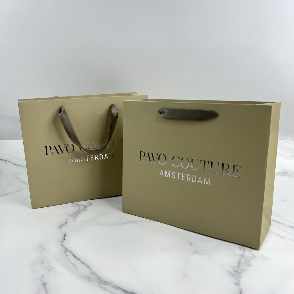 ถุงกระดาษสีเขียวเซจแบบกำหนดเองพร้อมหูหิ้วริบบิ้น - บรรจุภัณฑ์หรูหราสำหรับร้านเสื้อผ้าบูติก
