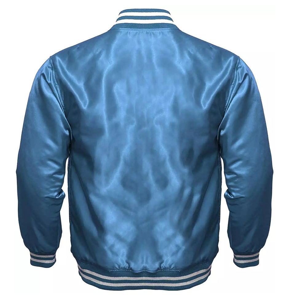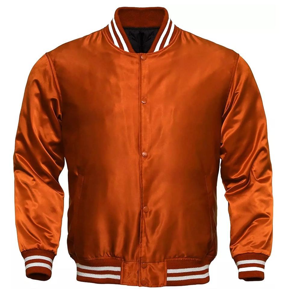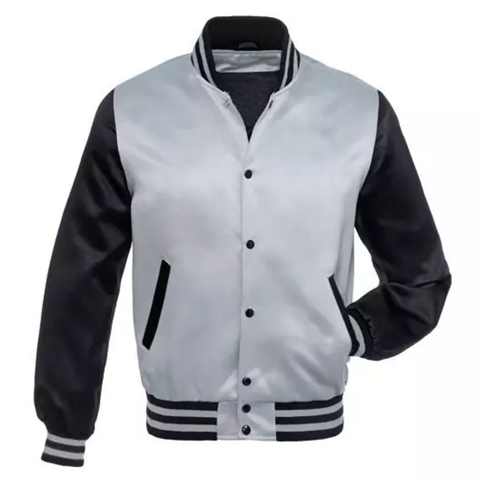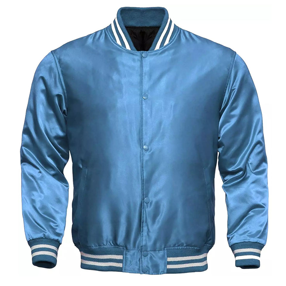 แจ็คเก็ตซาตินแบบกำหนดเองสำหรับผู้ชาย แจ็คเก็ตเบสบอลวาร์ซิตี้ ผ้าเนื้อนุ่ม แฟชั่น จำหน่ายจำนวนมาก