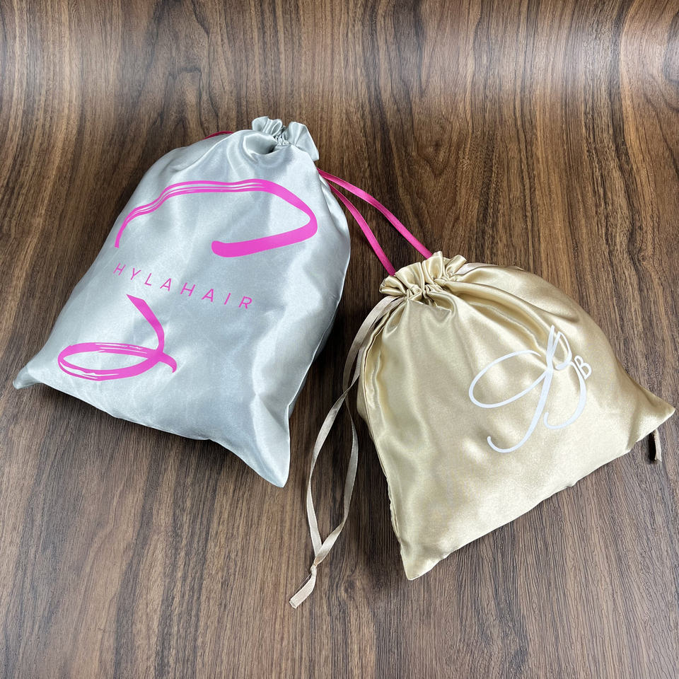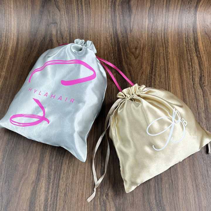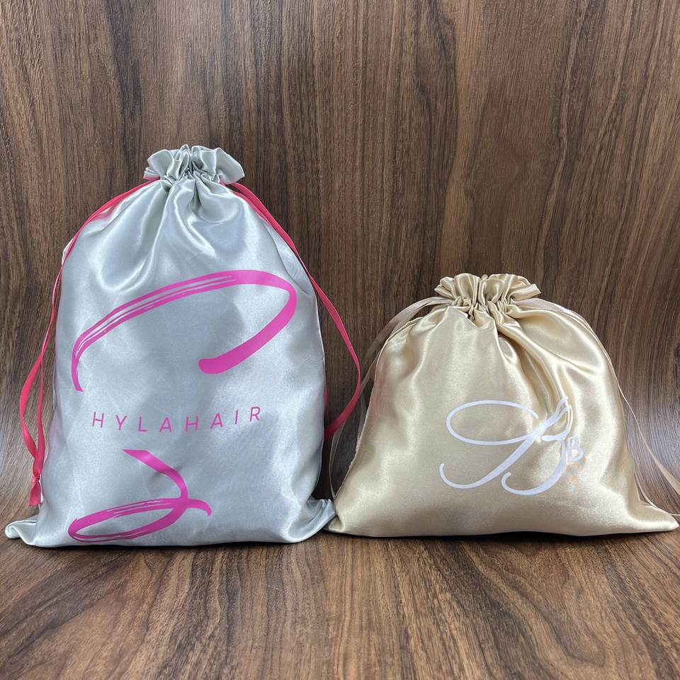 ถุงผ้าซาตินแบบมีเชือกผูกพร้อมพิมพ์โลโก้ - บรรจุภัณฑ์หรูหราสำหรับต่อผมและผลิตภัณฑ์ความงาม