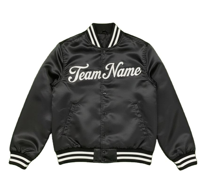 เสื้อแจ็คเก็ตวาร์ซิตี้ผ้าซาตินแบบกำหนดเองพร้อมชื่อทีม – เสื้อแจ็คเก็ตวาร์ซิตี้ปักลายแบบส่วนตัวสำหรับสุภาพบุรุษและสุภาพสตรี