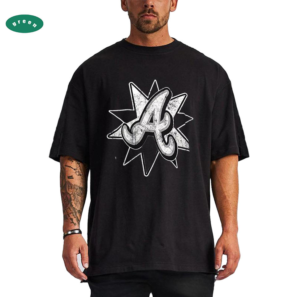 เสื้อยืดผ้าฝ้ายพิมพ์ลายกราฟิกสำหรับผู้ชายเสื้อยืดสีดำคอตั้งทรงโอเวอร์ไซส์แบบกำหนดเอง